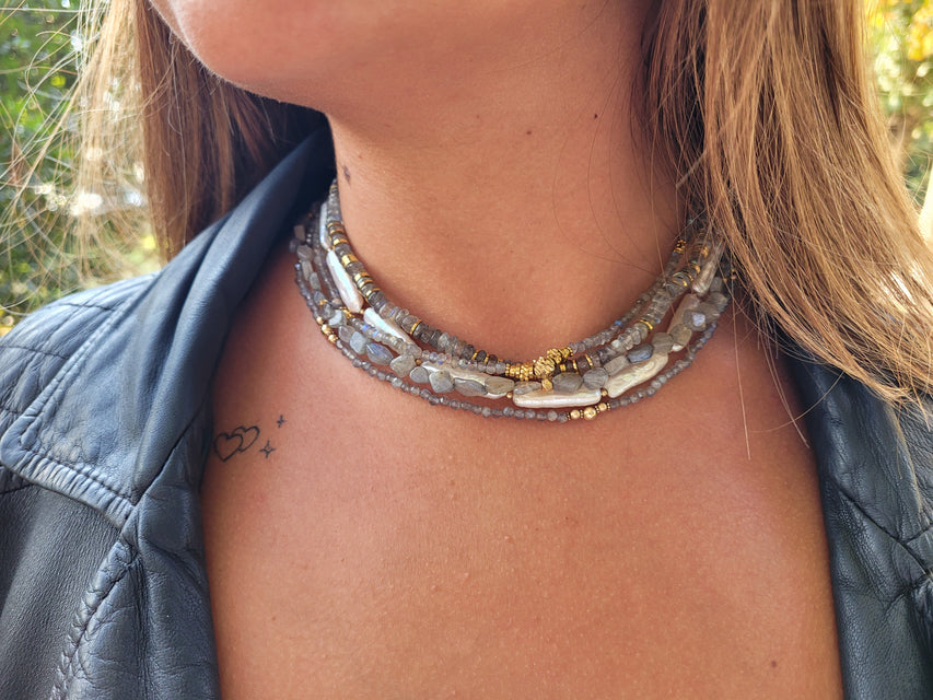 Necklace made with moonstone gems and minimalist 14kt gold filled details. Magnetic closure.